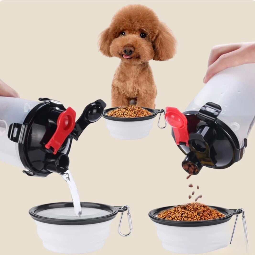 Draagbare Hondenfles + Voedselcontainer (2 in 1).